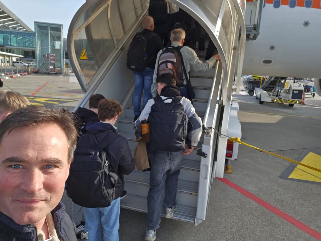 Das Erasmus+ Inklusionsprojekt fand in diesem Jahr mit einer Gruppe von 10 Teilnehmer:innen, in Begleitung von Rebecca Müller und Felix Horstmannshoff, statt. Unsere Reise begann am Flughafen Basel/Mulhouse, begleitet von Natascha Horstmanshoff, die uns sicher zum Abflug brachte. Nach einigen kleinen Herausforderungen am Check-in und den Sicherheitskontrollen durch zu große Rucksäcke, „gefährliche“ Haarbürsten und einem fast verlorenen Reisepass, hoben wir schließlich nach Málaga ab. Für viele Teilnehmer:innen war es der erste Flug, ein aufregender Moment, der den Beginn eines unvergesslichen Abenteuers markierte.